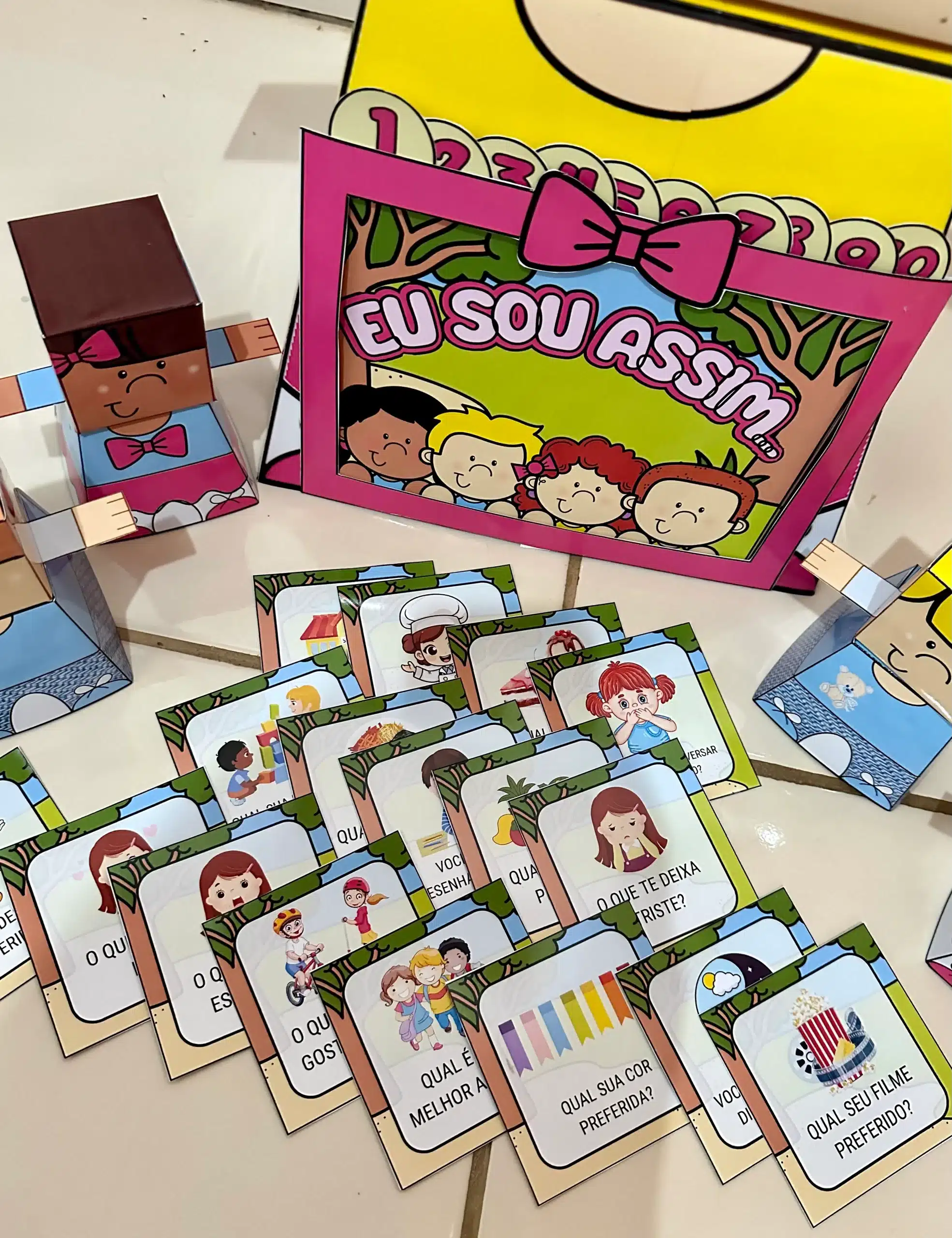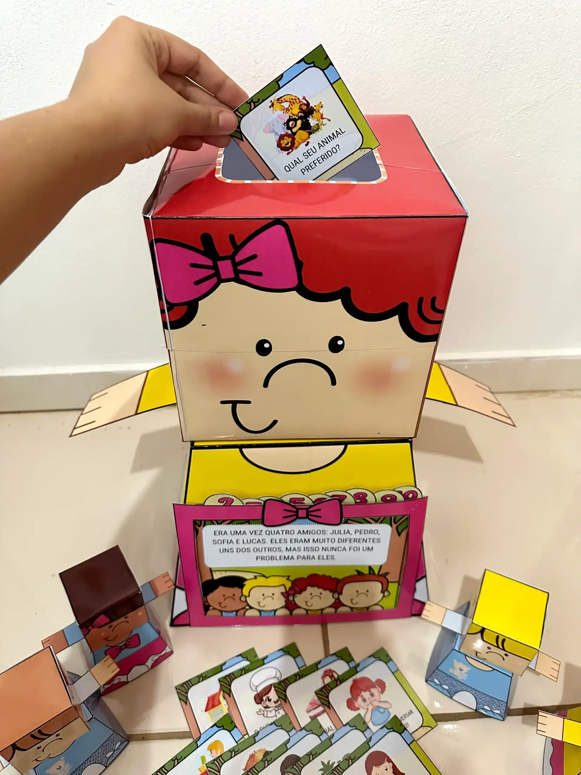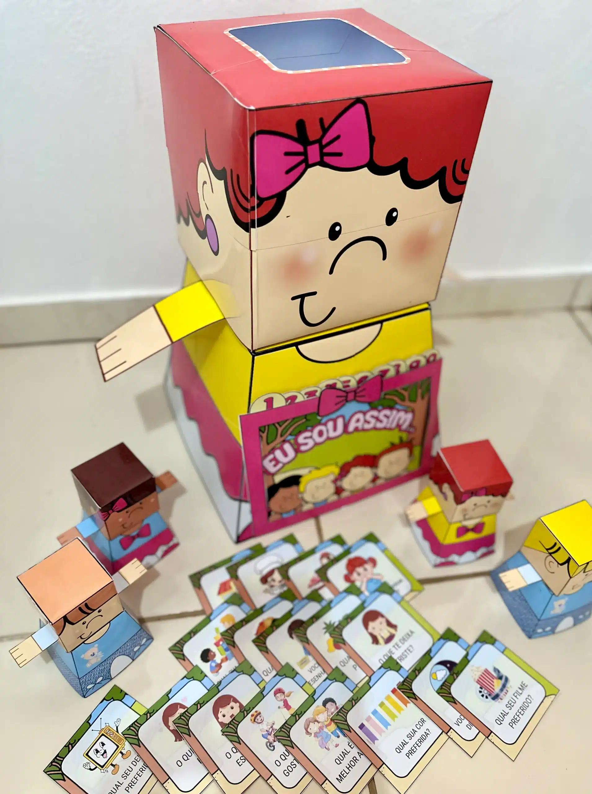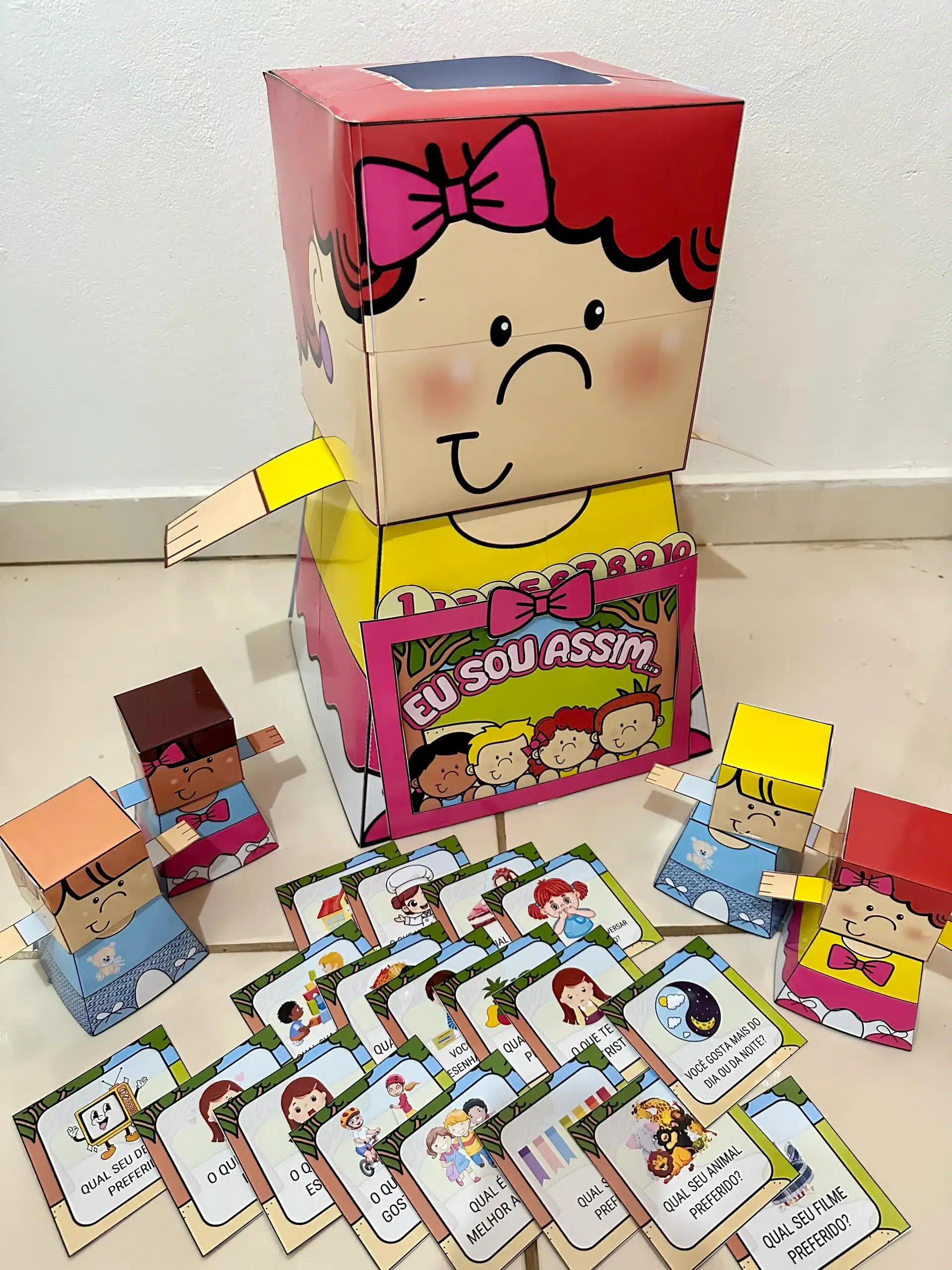 ⭐Kit de contação de história e dinâmica de apresentação para primeiro dia de aula. Essa proposta trabalha identidade e respeito às diferenças e também é uma excelente oportunidade para as crianças se apresentarem para os colegas e para a professora. ⭐O kit inclui: ✅Boneca gigante (43 cm de altura e 28 cm de largura) ✅História interativa ✅Fichas para dinâmica de apresentação ✅Personagens 3D (12 cm de altura e 7 cm de largura) ✅O arquivo inclui tutorial para montagem dos materiais.