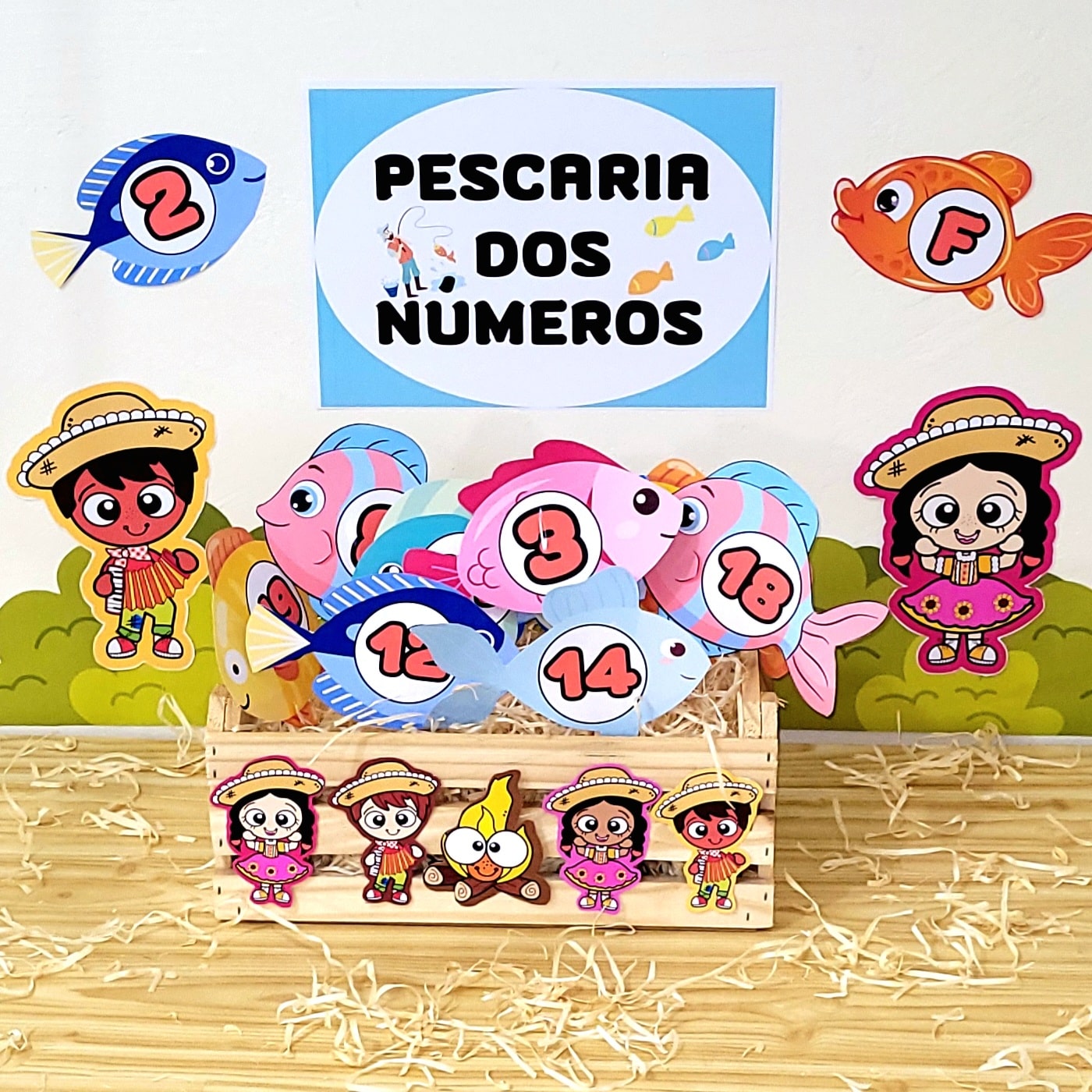 Pescaria dos Números, uma dinâmica lúdica e divertida onde os pequenos irão aprender brincando, desenvolvendo a leitura. Recurso utilizado nos dias de Festa Junina ou na semana da Festa Junina com os alunos em classe. ✅ Total de 21 peixinhos sendo números de 0 á 20 + decoração para parede + decoração para o caixote Benefícios da proposta: Reconhecimento dos números. Reconhecer e identificar a sequência numérica. Desenvolver a atenção e memória. O arquivo é em PDF e pronta para impressão, e é recomendado o uso de papel fotográfico ee gramatura 180 para impressão. Para maior durabilidade é recomendado plastificar ou passar durex em todo o peixinho.