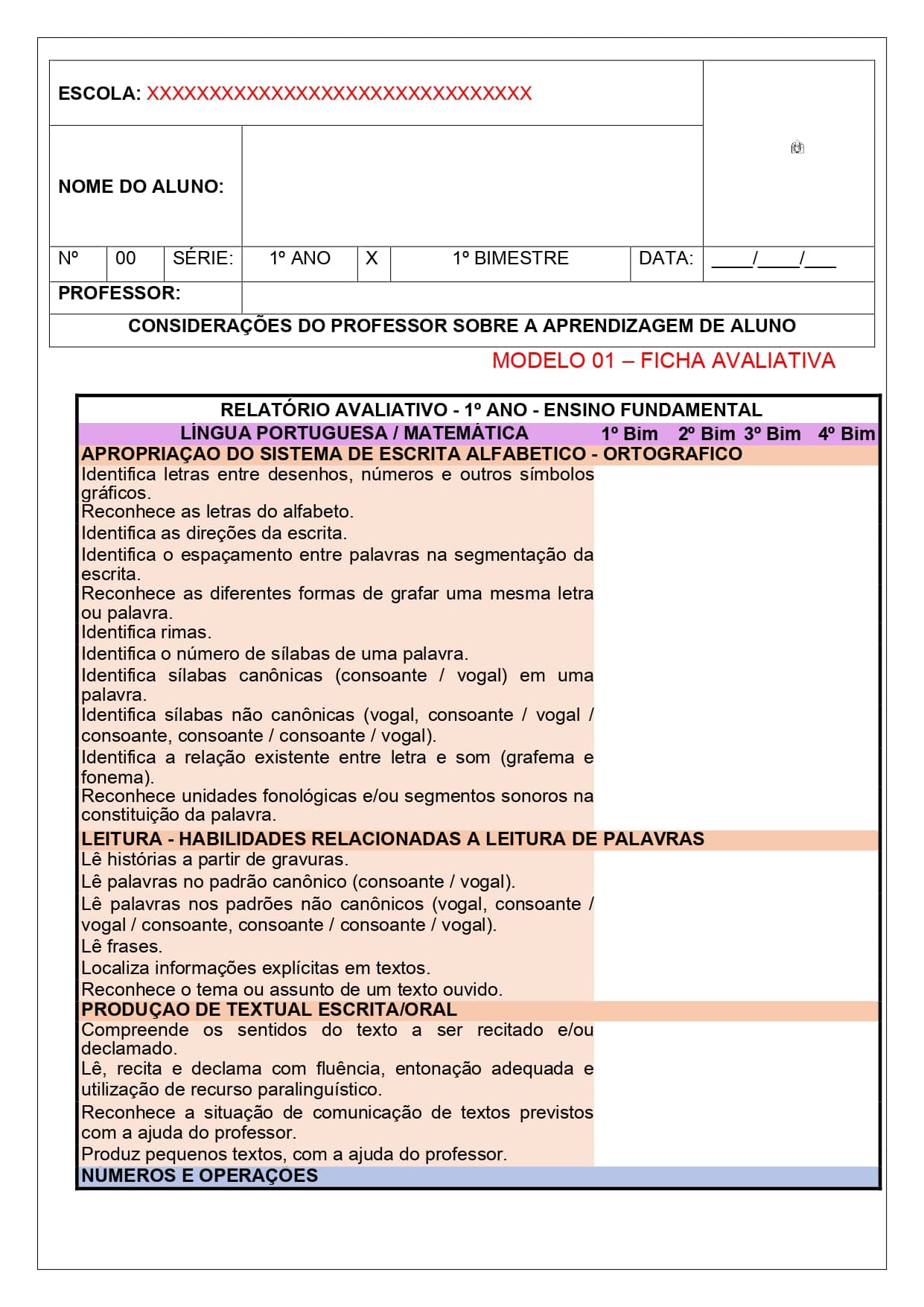 Relatórios de desenvolvimento 2025 – 1º ano ensino fundamental – 1º bimestre/trimestre