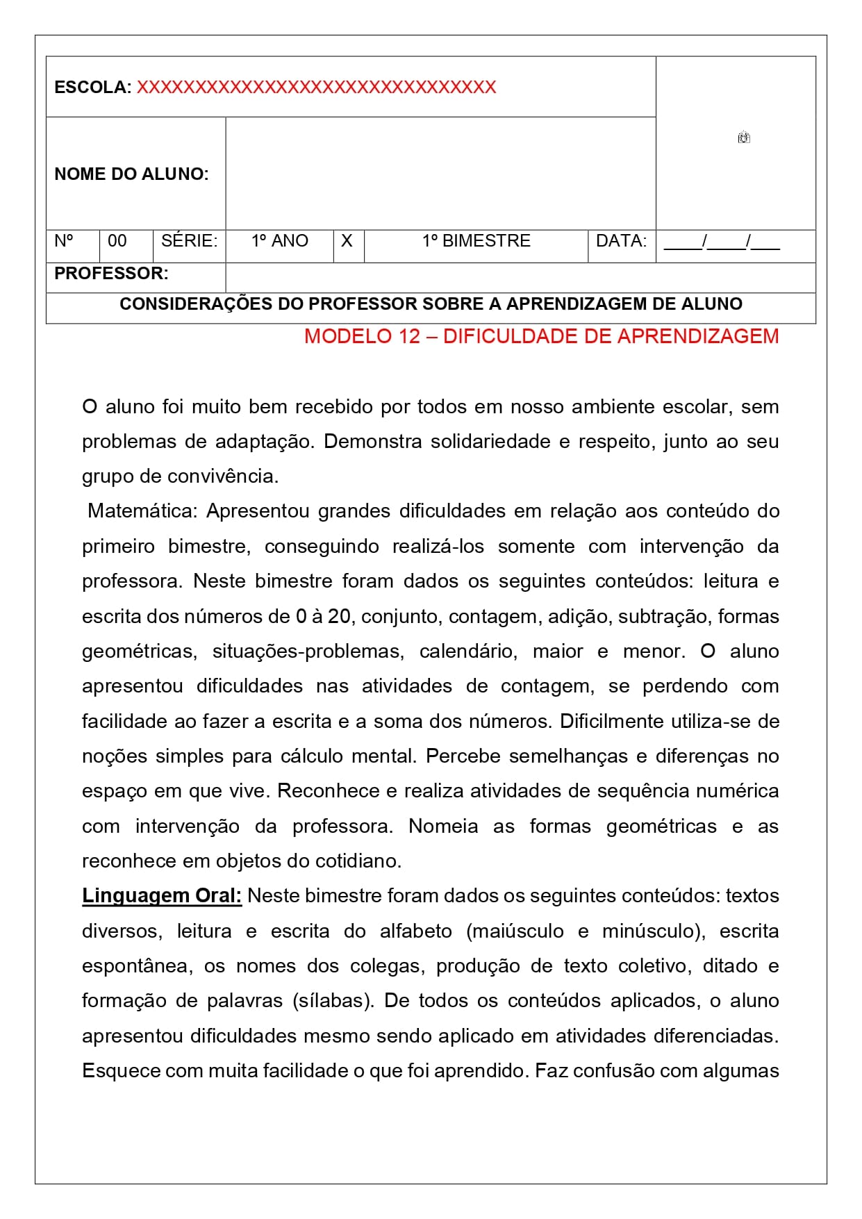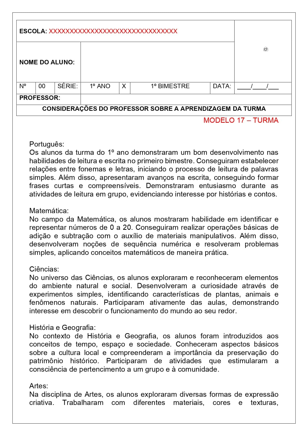 34 modelos de relatórios descritivos individuais e de turma.