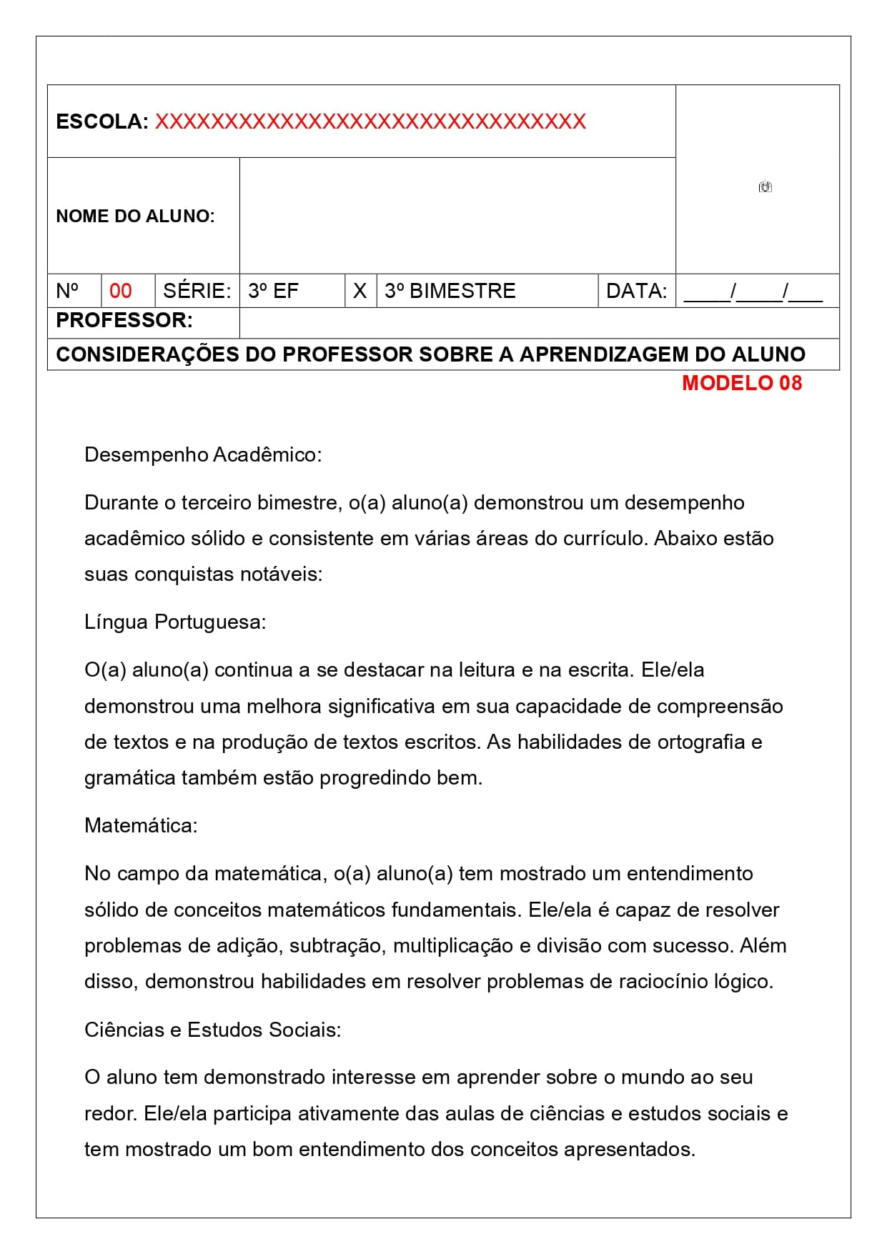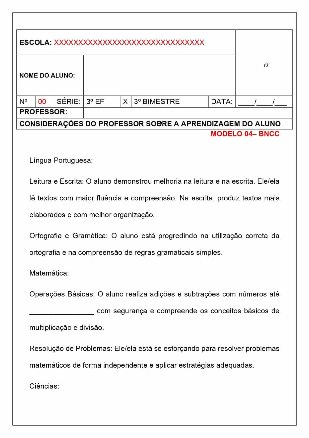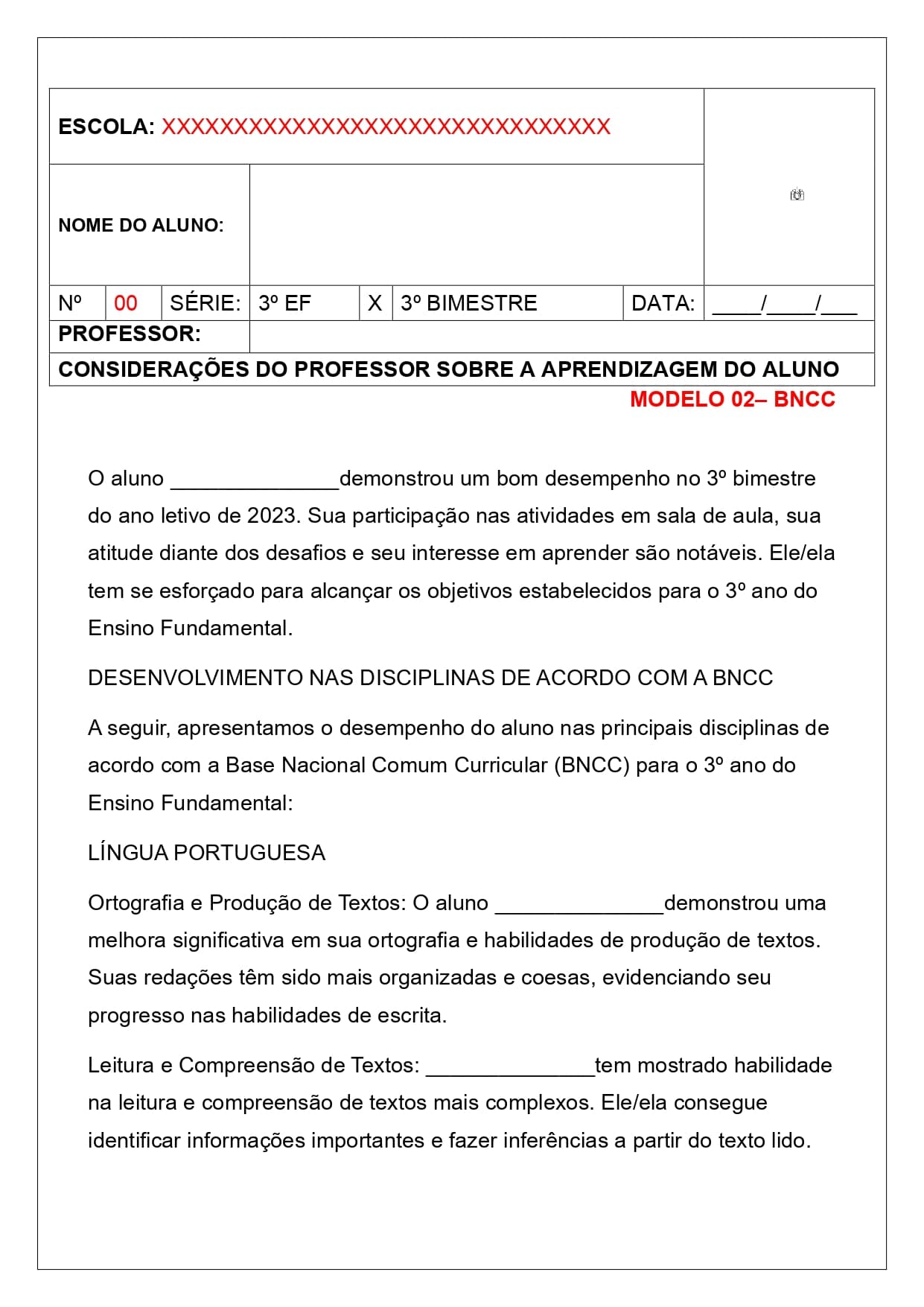 Relatórios de desenvolvimento – 3º ano ensino fundamental – 3º bimestre/trimestre