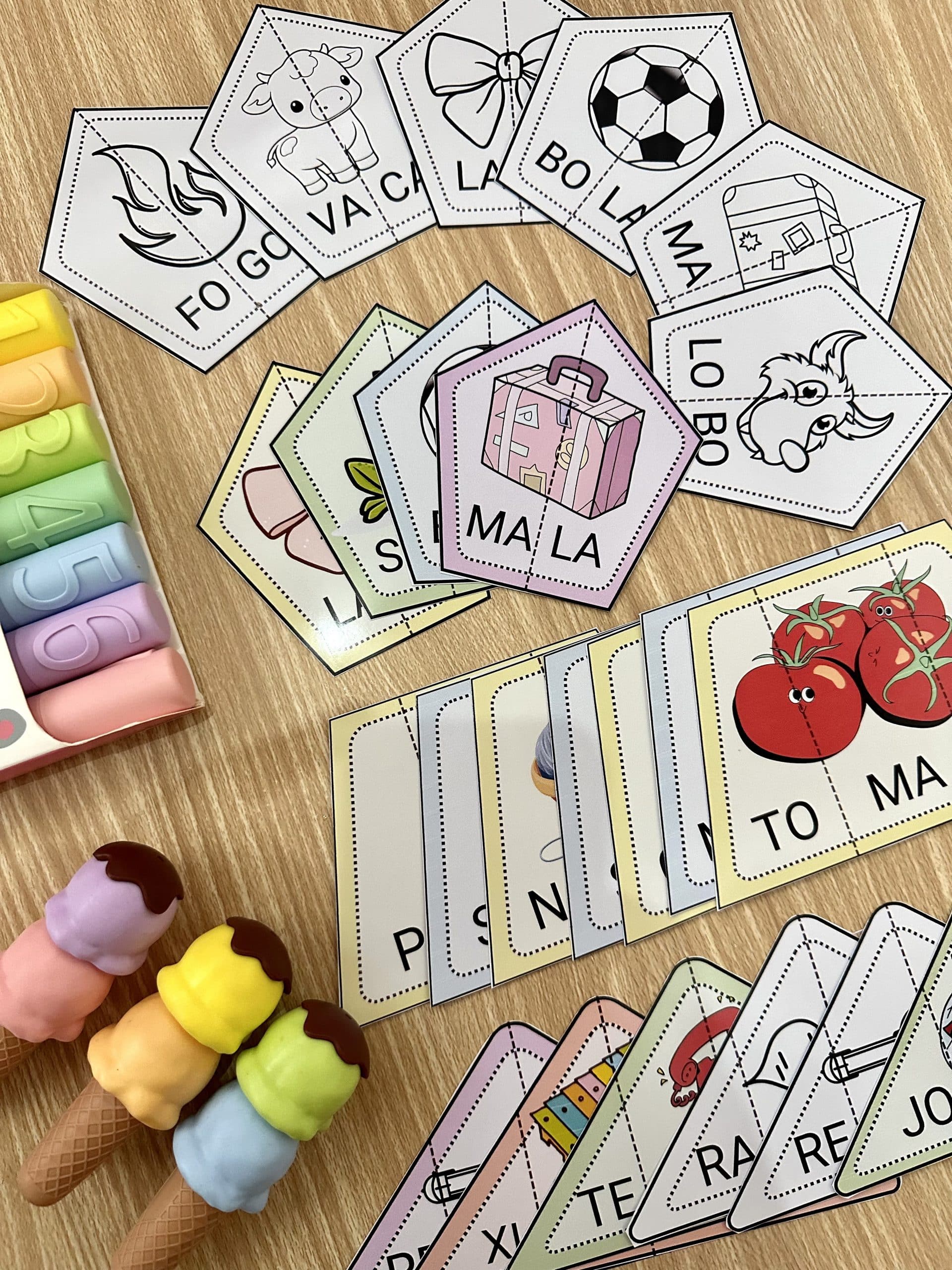 ⭐O arquivo Sílabas Geométricas é uma quebra-cabeça silábico em que a criança precisa organizar as sílabas corretamente para formas as palavras. O material vai nas opções coloridas e para colorir e inclui palavras de sílabas simples e também a opção de palavras de sílabas complexas. ⭐Esse é um recurso pedagógico muito eficiente para auxiliar crianças em fase de alfabetização a compreender melhor a divisão silábica e a formação de palavras. Além disso, esse recurso ajuda a estimular a percepção auditiva das crianças, que precisam identificar os sons das sílabas para formar as palavras. ⭐Outro benefício importante é que o recurso ajuda a criança a compreender melhor a estrutura das palavras, o que é fundamental para a alfabetização. Elas aprendem a identificar as sílabas que compõem as palavras e isso facilita muito o processo de leitura e escrita.